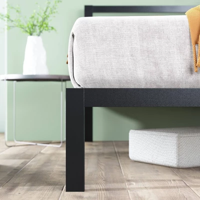 The steel-framed Modern Studio Platform Bed 1500 with Headboard by Zinus features wooden slats that provide strong support for your memory foam, latex, or spring mattress. 14 inches high with 12 inches of clearance under the frame for plenty of under-bed storage. Please follow instructions closely for proper assembly. Numbers or Arrows must match on all four corners and holes aligned. Improper assembly will result in the slats being too wide and Part C being too short. The Modern Studio Platform Bed 1500 with Headboard provides stylish and strong support for your mattress.