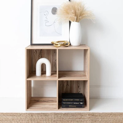 Keep clutter out from underfoot with this four-cube organizer. The natural finish over replicated sugarberry wood grain is warm and inviting, all while keeping your toys, knickknacks and other items stored away. The perfect marriage of style and function, this organizer is an ideal addition to any busy living space. Signature Design by Ashley is a registered trademark of Ashley Furniture Industries, Inc.