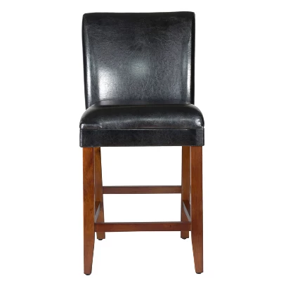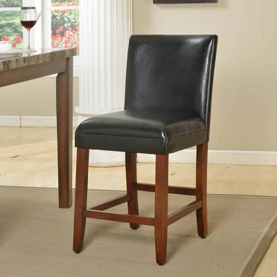 This 24” Luxury Faux Leather Barstool is designed for comfort and style. Perfect for everyday use at a kitchen counter or for entertaining around a game room bar, this barstool adds a touch of functional luxury wherever it is placed. With a classic design that pairs well with a variety of table and counter styles, this barstool is a lasting investment that is easy to assemble and maintain. Featuring wooden legs, this stool’s 24 inch height makes it an ideal option for counter seating.