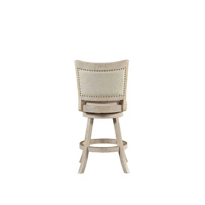 It’s the little details that help the Melrose Swivel Stool make a big statement. There’s the seat and the backrest, which are decorated with antique brass nailheads. Or the linen-upholstered high-density foam cushioning with welt trim. A full-ring footrest and protective metal kickplate add durability and comfort underneath a decorative double seat apron. And the piece de resistance? The ball-bearing steel swivel plate which guarantees a flawless full-circle swivel. It’s precisely constructed with a rubberwood frame and multistep wire-brushed finish that is sure to last. This 24-inch traditional style counter stool pairs perfectly with your eat-in kitchen counter or pub table. Choose your favorite color combination from our available options.