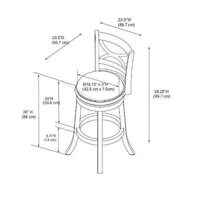 Bring trending fashion home with a counter stool offering casual, country charm that suits the mountains, seashore or anywhere in between. With an open design wooden back, cream finish and circular seat upholstered in sky blue easy care faux leather, the counter stool is comfortable, stylish and generates a relaxed vibe. The 24” high seat swivels 360 degrees and has a hefty 275 lb. weight capacity with sturdy rubber wood construction, and a round combination footrest and brace that strengthens the flared legs.