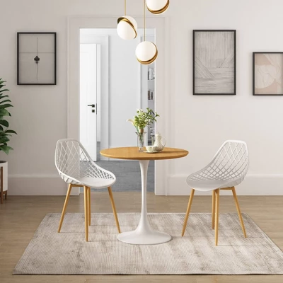 Another thoughtful design from the Kurv Collection, the Kurv Table should be a staple in every modern space. Whether as a dining table for small spaces, a chic desk, or even as a foyer table, it’s a versatile piece that never goes out of style. The minimalist and timeless design blends well in any setting, and can fit nicely in nooks with its round top design. The compact size is great for smaller spaces and makes it easy to configure with one to four chairs comfortably. The wood look paper veneer finish and beveled design of the table top is easy to clean, and the sturdy single stem base is a true space saver. Table measures 31.5 x 31.5 x 30 inches. Minor assembly required.