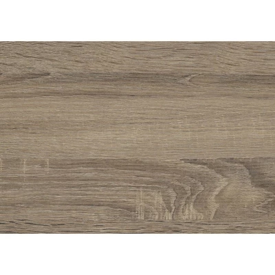 - Thick tabletop in a dark taupe wood-look finish features 2 drop leaves that are held up by sliding support bars