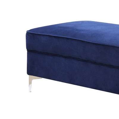 The Bovasis sofa and ottoman are ideal for smaller spaces. In a contemporary design featuring nailhead trim and sturdy metal legs. The beautiful velvet upholstery is soft to the touch and the button tufting adds dimension to the sofa. Add this durable, modern-looking ottoman with wooden construction to your living room furniture. Pair it with the matching ottoman to complete the look. Available in two colors.