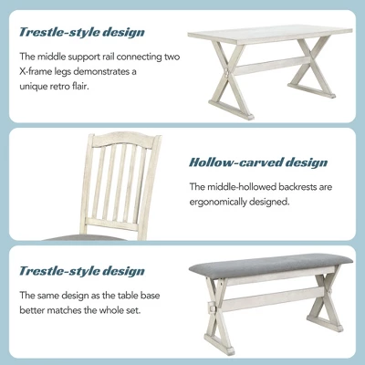 - [Rustic Design] Trestle-style design of the table and bench, which has a middle support rail connecting two X-frame legs, which not only demonstrates a unique retro flair but also ensures added stability. Several ingenious and practical elements make it less homogeneous and more distinctive, having an impact on the rustic and retro style.