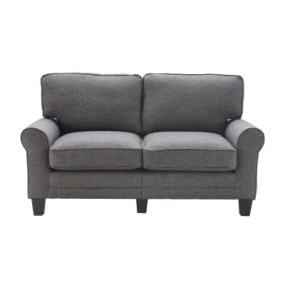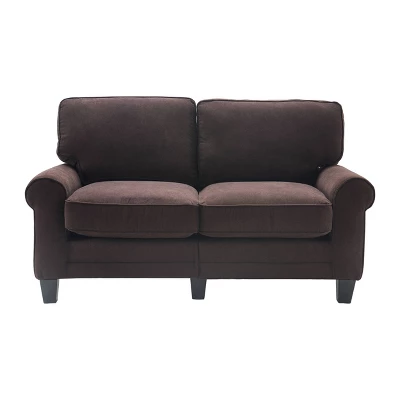 Enjoy functional style and plush, comfortable seating with the Serta Copenhagen 61″ Loveseat. A great solution for smaller spaces, its compact size and easy tool-free assembly makes it an affordable and stylish seating solution for your apartment, condo or office. Soft rounded arms, pillowy back cushions and espresso finished footers bring traditional style to your living room, den or game room. Quality hardwood materials deliver strength and stability you can count on, while individually wrapped coils surrounded by high-density foam and poly-fibers provide comfortable seating you can sit back into. Designed to match pieces in the Copenhagen Collection, this Serta loveseat can be combined with a sofa and accent chair for a completely coordinated look.
