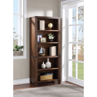 Create a home office that is both organized and beautiful with the Baton Rouge Bookcase. Large adjustable shelves keep books, office supplies and cherished objects organized and close at hand. Metal burnished corner accents, add a rustic, industrial charm that allows this shelving unit to sit pretty in a home office or front and center in a living room or family room setting. Add our Baton Rouge 2 Drawer File Cabinet and Desk to complete this home office suite and turn working from home into a true pleasure.