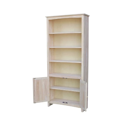 For those who appreciate high quality wood furniture with a traditional and elegant look. International Concepts home furnishings will complement any décor. This Bookcase is made of solid wood ensuring years of use. It measures 32″ W x 12″ D x 72″ H, and features a butcher block surface, 5 shelves (3 adjustable and 2 fixed), and 2 lower doors. Each shelf measures 28.85″ W x 9.84″ D. There are 10.52″ between shelves, and 2.2″ from the floor to the bottom of the lower shelf. Each door measures 19.9″ H x 13.5″ W. The Bookcase is available in a weathered gray finish, a rich espresso finish, or unfinished, allowing you match any decor. It ships ready to assemble in 2 boxes.