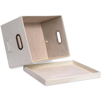 - LINEN FILE ORGANIZER WITH LID: The linen file organizer is the perfect storage box to store all important documents, folders and paperwork while still providing a soft accent to the room/office with its decorative design