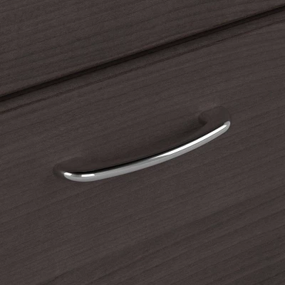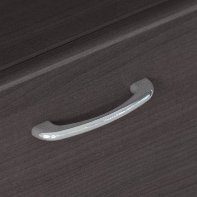 The Bush Furniture Cabot 60W Corner Desk with Hutch presents a home office solution with transitional style. Take advantage of the space-saving corner office desk design to spread out with all the materials and equipment you need to power through your next project or assignment. The durable desktop supports up to 200 pounds and includes built-in wire management to keep cords and cables out of the way. Organize letter, legal, and A4-size paperwork inside a file drawer that opens on smooth full-extension ball bearing slides for an effortless reach to contents. The home office desk’s open storage area includes one adjustable shelf to accommodate books and materials of various sizes. Storage can be installed on whichever side you prefer for a custom workspace configuration. The Desk Hutch adds a closed compartment behind a fluted glass door along with right and left shelves for flexible storage and display capacity. Three open cubby spaces are perfect for keeping work-in-progress and frequently used materials easily accessible. Stylish metal hardware complements your choice of several traditional and contemporary finish options for an appearance that works with your own space and taste. This corner computer desk with hutch has been rigorously tested to meet or exceed ANSI/SOHO quality standards for safety and performance and is backed by the Bush Furniture 1 Year Manufacturer’s Warranty. See the full Cabot Collection for coordinating items to complete your transitional workspace.