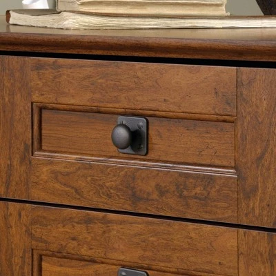 Maximize the space in your home office or work space with this corner computer desk from the Carson Forge® collection. Its spacious table top surface provides you with ample amount of room for all your must-have desk essentials and more – laptop, pens and papers, important documents and even a little home décor. It features a slide-out keyboard/mouse shelf that opens and closes on smooth metal runners. It also includes three easy gliding storage drawers for easy access storage of miscellaneous office items. The lower drawer with full extension slides holds letter, legal or European size hanging files. Talk about organization! Behind the swinging door is a hidden area that includes an adjustable shelf and accommodates a vertical CPU tower. It also features a grommet hole so you can keep all your cords and wires neat and out of the way. Finished in Washington Cherry and accented with wrought iron style hardware, this beautiful desk has the style and functionality your home office needs.
