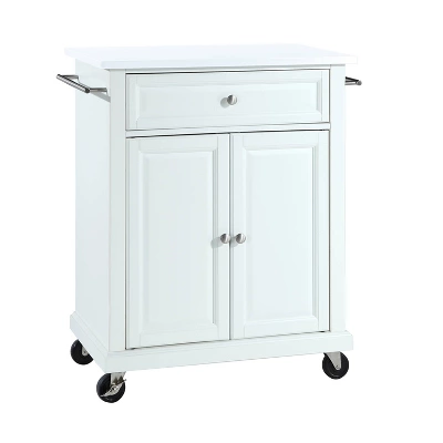 Save space while adding mobile storage with the Compact Kitchen Cart. Featuring a large cabinet with an adjustable shelf, this cart easily stores pots, pans, or small appliances. Two towel bars and a full-extension drawer are perfect for keeping dishtowels and utensils close at hand. With a beautiful granite countertop, plus heavy-duty casters for mobility, the Compact Kitchen Cart is a welcome addition to your kitchen space.