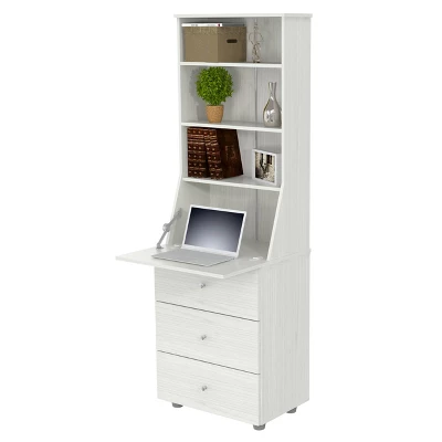 Computer/Credenza Workcenter by Inval finished in a rich “Washed Oak” laminate with durable melamine which is stain, heat and scratch resistant. It is constructed from manufactured wood. This unit offers an ample hidden work surface which folds up to change the unit’s look from an office space to a home credenza, and blends traditional with classis style. This unit features hidden storage behind the drop down desktop, three (3) large box drawers with metal drawer glides that can accommodate your office supplies and other home storage items. The attached hutch has three (3) shelves and allows you to display books, binders and other decorations to match your home décor. Anti-tip hardware is included.