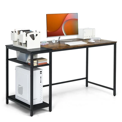 A great office desk will accompany you get the job done more conveniently and efficiently! No matter what you want to do, either working or studying, either playing gaming or writing, our computer desk is a perfect choice for you. 2 storage shelves greatly satisfy your demand to place plenty of daily items, which can be fixed on the left or right side as your preference. Plus, you can simply adjust or remove the top shelf to accommodate computer host. Moreover, spacious desktop offers optimal workspace and makes your office supplies with easy access as well. Thick engineered wood and solid steel frame account for reliable structure for long-term use. With industrial style, this study desk blends well with various room styles and shows unique taste.