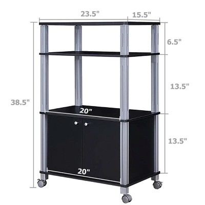 - 『Ample Storage Space』: With 3 shelves and a 2-door storage cabinet, this microwave oven stand provides large storage room for you, well accommodates your microwave oven, dishes, and other items, makes your kitchen neat and tidy.