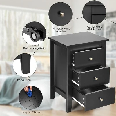 - Large Storage Space: Equipped with 3 drawers, our bedside cabinet allows you to arrange your books, magazines and other items you may have. You can easily pull out the drawers through the slide rail and handle. Besides, the spacious table top is ideal to place your cups, photo frames or plants.