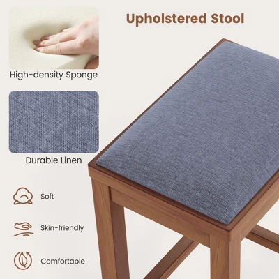 Costway Set Of 2 Upholstered Bar Stools Wooden Counter Height Dining Chairs Brown