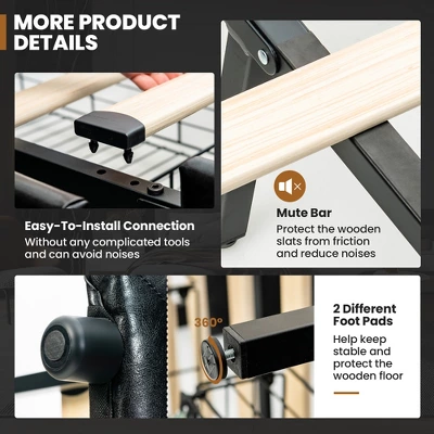 - Unique Design for Easy Assembly: Without any complicated tools, the wooden slats and metal frame can be connected easily by a simple press. And the bed frame also has the mute bar protecting the slats from frictions. Overall, the installation is very simple and you can finish by yourself.