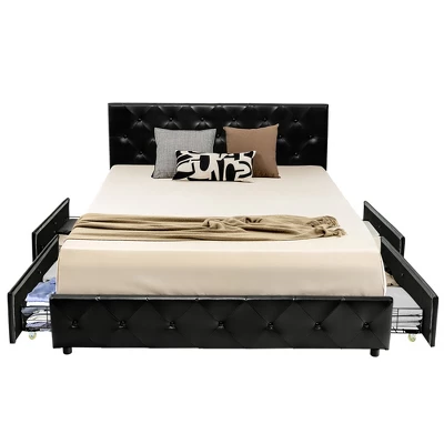 With 4 deep storage drawers under a button tufted bed frame, you get both a comfortable platform bed and an ex tra storage solution.