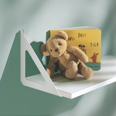 The Dolle Lite Shelf Silver TRI Shelf Bracket Set in White is a lightweight, yet sturdy shelf designed with a smooth, high quality melamine surface and a shelf core composed of environmentally friendly particle board. Dolle LITE shelves feature a slim-line decorative edge – no glue seams between the surfaces and edges like lesser quality laminate shelves on the market. Environmentally friendly particle board (65 to 90% residual sawmill and forestry industry wood) and feature a slimline 3/4″ decorative edge.