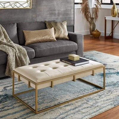 Ervyn Gold Finish Velvet Button Tufted Cocktail Ottoman – Inspire Q