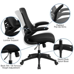 - Tilt Tension Adjustment Knob adjusts the chair’s backward tilt resistance