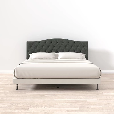 Bring a blend of traditional and contemporary style, and understated luxury to your bedroom with this upholstered headboard! Meticulously constructed with a solid and engineered wood frame, this headboard is wrapped in foam-filled, neutral polyester blend upholstery and finished with a classic upholstered camelback design. The gentle curves give way to stylish tufting adding definition and character to the headboard. Simple assembly and the addition of a universal bedframe, mattress, and bedding of your choosing will have you in dreamland in no time. Frame and mattress sold separately. Hardware for mounting headboard to a bedframe is not included but available upon request.; No box spring required; Mattress sold separately; Choose from several elegant, designer colors of durable, easy-care, polyester fabrics