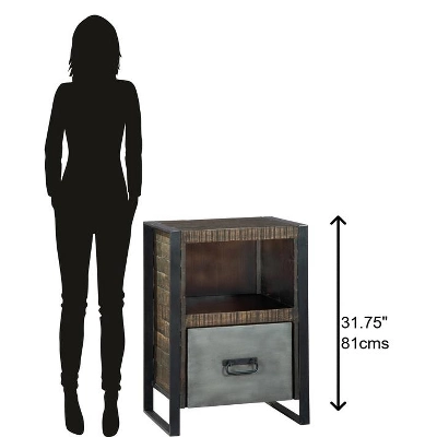 - One open shelf and steel front file drawer with iron bail below.