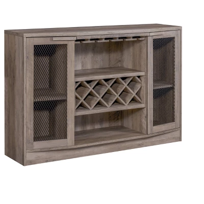 Combine elegance and practicality with this beautiful bar cabinet in an attractive espresso finish. It’s the perfect addition if you want to maximize space in your living or dining room without sacrificing sumptuous style. Features include two intricately designed curved glass doors that give this cabinet a classic bar look. There is ample storage space to showcase your finest glassware. The wine rack is an innovative feature in the center of the cabinet that allows you to showcase 7 of your favorite wines.
