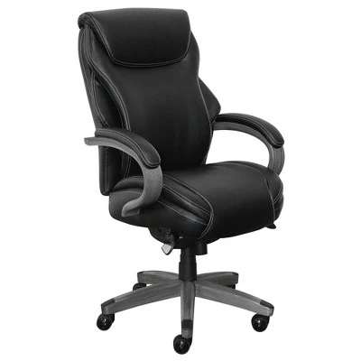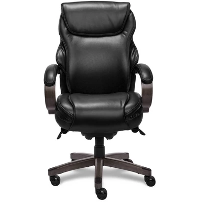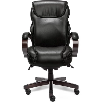With high-end finishes like soft bonded leather upholstery and elegant wood detailing, the La-Z-Boy Hyland Executive Office Chair with AIR Technology is a statement chair for any traditional office space. The flexible AIR lumbar system pivots to provide back support whenever you shift. The adjustable height, recline and layered memory foam cushions will keep you cradled in comfort all day. The La-Z-Boy Hyland Executive Office Chair with AIR Technology is a luxurious addition to any workspace!