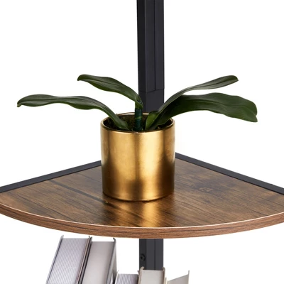 Add some charm and a mix of industrial-farmhouse when displaying your favorite decor with the 5 Shelf Corner Etagere Ladder Bookcase for Corner Space from JOMEED.The industrial bookshelf combines artistic elements and practicalitywith an open design that becomes the ideal platform for displaying decorations such as books, family photos, potted plants, utensils, and many other items. It compliments any living room, bedroom, kitchen, study, and office.The 5-tier corner bookshelf is made of high-grade MDF board and durable black metal providing stability for the corner bookcase and comes with a safety wall bracket to prevent the unexpected tipping of furniture. The bookshelf also features a supporting leg under the bottom shelf to provide stability and make it not easy to shake. This corner stand is suitable for any corner with its arc design, and no sharp edges, easily bringing the room together. Cut the clutter in your living room, office, or den with this 5-tier corner bookcase from JOMEED.