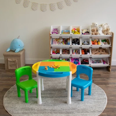 Playtime becomes more fun when your kids can easily take out their toys, books and games and then quickly clean up afterwards. The space-saving Humble Crew Extra Large Toy Storage Organizer with 20 Storage Bins offers 40% more storage than the leading organizer and is ideal for organizing your closet, play space, pantry, office, mudroom, child’s bedroom, playroom, nursery, living room, etc. BPA and phthalate free, 16 standard and 4 large colorful storage containers are easy to remove, replace and reposition along the 4 tiered organizer shelves. Storage bins are sized just right within the toy organizer for toddlers and preschool aged children but versatile enough for use by adults as well. Sturdy engineered wood construction frame with stabilizing braces and steel shelving rods, 20 pound weight capacity per level. Some assembly is required. A great toy storage box alternative and the perfect organizational solution for any room within the home.