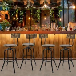 Costway Set Of 4 Industrial Bar Stool Adjustable Swivel Counter-Height Dining Side Chair