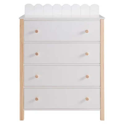 Straight from the awe-inspiring lines of a children’s storybook, this playful dresser is sure to charm the whole family. Constructed with solid Brazilian pine and MDF painted white, the neutral colorway is an easy match in nearly any setting. 4 spacious drawers provide ample storage, and the 18” x 32” top offers a perfect display in front of the picket fence backdrop. Keeping your little one’s play space organized and fun will be a breeze with this cozy piece.
