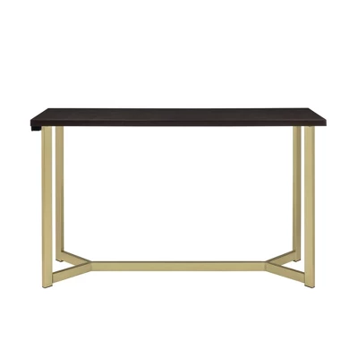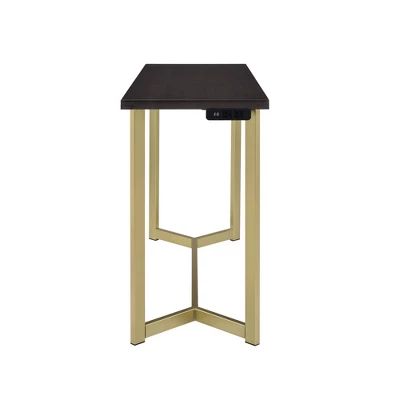 The Picket House Furnishings Melrose Multipurpose Bar Table Set will introduce modern style to your casual dining nook or entertainment area. The bar table features a sleek, gold metal base that pairs perfectly with the espresso finish top. This elegant bar table offers a sleek and functional design with its USB power capabilities. The stools also feature gold metal legs and is upholstered in brown polyester fabric with foam cushioning for extra comfort. This set is designed with small spaces in mind. Add this glamorous multipurpose bar table set to your home today for a look you’ll never tire of.