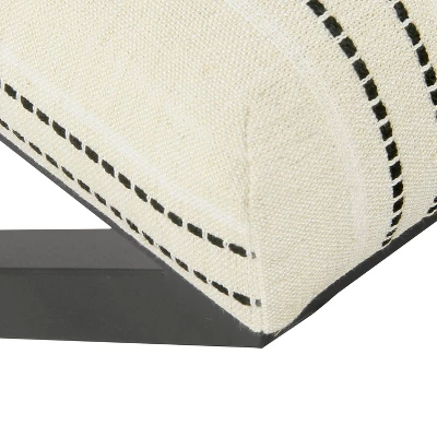 This modern industrial ottoman will update any space. Its upholstered cushion tops a finished metal base. Use it to complement an accent chair in a living room, to provide extra seating in a family room or pair two together at the end of a bed. This square ottoman works well in a smaller space and will blend with a variety of styles. Easy to assemble and maintain with spot cleaning as needed. This ottoman can support up to 250 pounds.