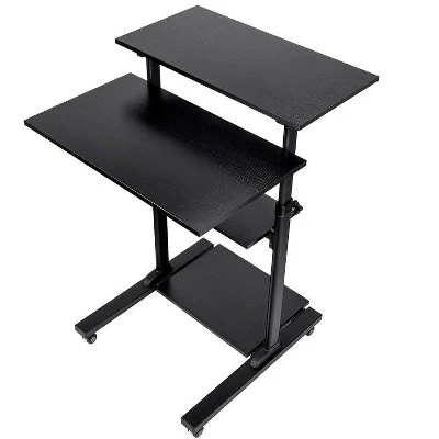 This adjustable sit-stand workstation cart provides ample workspace for a PC or laptop, a monitor, and a keyboard. Adjustable from 32″ to 49″ of height, you can easily use it as a sitting desk or a standing desk. Sturdy high-strength steel construction and locking wheel casters make this workstation a versatile choice for home, office, or classroom use. Four Spacious Shelves: Includes top monitor, main keyboard, lower peripheral, and bottom accessory shelves to accommodate all of your equipment.
