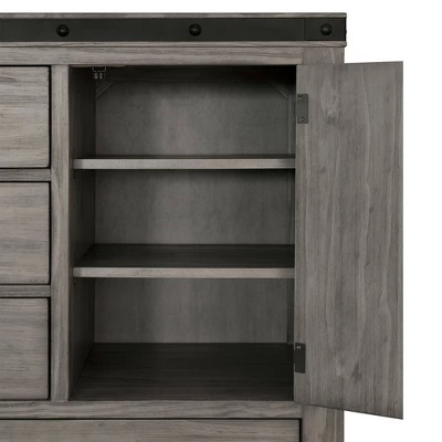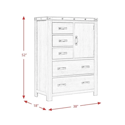 The Picket House Furnishings Montauk 5-Drawer Gentleman’s Chest is the ultimate chest for your bedroom! This chest comes with five, spacious drawers; perfect for easily keeping all of your belongings neatly stored away. This piece also comes with a cabinet with interior shelves for extra storage space. The bottom drawer features a dust proofing layer to help protect your belongings. The drawer pulls and trim along the top of the chest are both metal with a black finish. Along the trim on the chest are decorative bolts, adding a little extra flair. Please note wood grains vary piece by piece and will not look exactly like the picture.