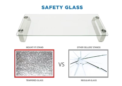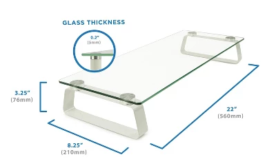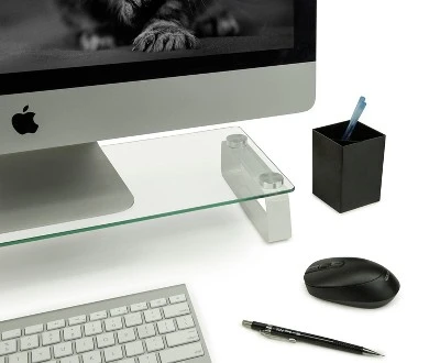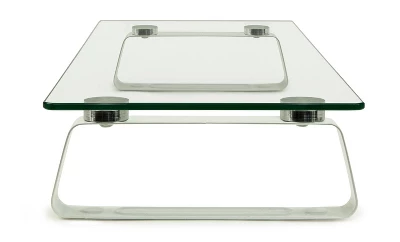 MI-7262 is an elegant, glass and aluminum stand that fits most screens or AV components. Elevate your display off your desk to open up additional space under the stand to stare your laptop, keyboard, or other office accessories. Raises your monitor up to a more ergonomic position. Large weight capacity, holds screens and devices up to 44 lbs.