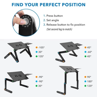 Mount-It! Lightweight Adjustable Laptop Stand With Built-in Cooling Fans And Mouse Pad Tray | Ergonomic & Portable Laptop Stand For Bed, Couch & Table