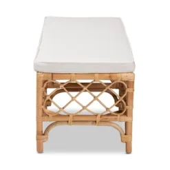 Orchard Fabric Upholstered And Rattan Bench White/Natural – Bali & Pari