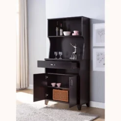 FC Design 67″H Kitchen Baker’s Rack Utility Storage Cabinet With Drawer And Two-Door Cabinet In Red Cocoa Finish