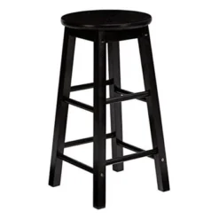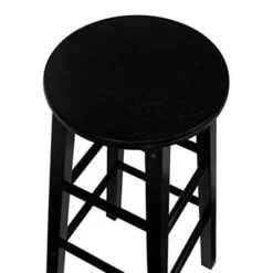 PJ Wood Classic Round-Seat 24 Inch Tall Kitchen Counter Stools For Homes, Dining Spaces, And Bars With Backless Seats, Square Legs, Black, Set Of 2