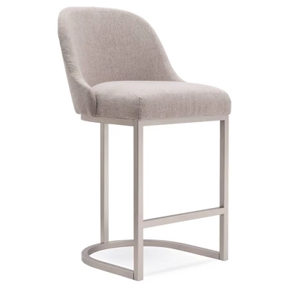 Sturdily built and stylishly appointed, this stool is not only a comfortable seat but also a veritable feast for the eyes–textural juxtapositions of lustrous steel and flaxy linen, the crowned high density foam seat meeting a wrap around, barrel back backrest, and a durable, heavy gauge steel base with bowed elements.