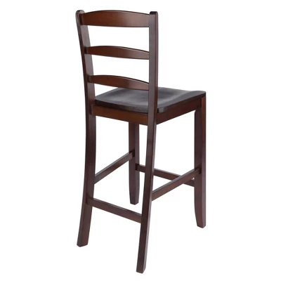 The Winsome Benjamin stools have a simple and straight forward, yet classic look. These 24″ ladder back stool allow them to be used with a variety of decors from country to contemporary. Their simple design and rich Antique Walnut finish is a perfect match to any high pub table. Seat Dim 16.34″ x 15.55″, Back Rest: 16.44W x 15.43″H. Stools have a maximum weight capacity of 220lbs. Made of Solid wood and Ready to Assemble. These ship out in one box.